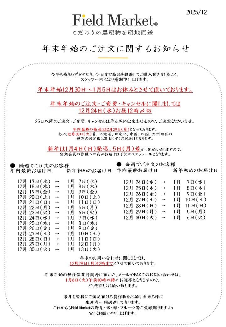 ご注文及びご発送はスケジュールをご確認ください。
